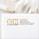 © Designs socialites. Envoyez votre courrier à vos clients ou à vos clients avec cette adresse de retour d'affaires moderne et élégante incorporant des initiales ou un monogramme. Les couleurs design sont dorées et brun-gris foncé. Ajoutez votre propre logo ou changez le texte pour le rendre unique. Veuillez contacter Socialite Designs si vous souhaitez un changement de couleur ou aider à customiser.