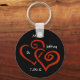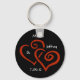 Red Entwined Hearts Keychain, on black background with customizable text, including date. Makes a great wedding favour!!