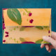 Enveloppes décoratives à motif rose de vin avec arrière - plan de teinte dorée, idéal pour les invitations de mariage, ou des célébrations très spéciales. Un texte peut être ajouté pour personnaliser.