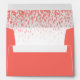 Art abstrait moderne peignant corail sur des dabs blancs en cascade avec une enveloppe corallienne correspondante. Autres articles correspondants disponibles. Peinture et design originaux par Sarah Trett pour www.mylittleedenweddings.com