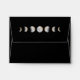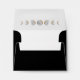 Adresse de retour, enveloppe rsvp. La couleur de l'enveloppe, en noir, peut être customisée. Caractéristiques de l'enveloppe, élégantes phases de lune dorée à l'aquarelle sur le rabat arrière et la doublure intérieure.