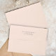 Cette conception comporte une enveloppe d'adresse de retour, en pêche rose blush, un 5x7 simple élégant, parfait pour les mariages, simple de base, uni, enveloppe de couleur unie, avec lettrage de base