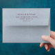 Cette enveloppe à la mode de mariage comporte un bleu poussiéreux, regard d'aquarelle avec votre adresse de retour pré-imprimée sur l'aileron arrière en texte de Bourgogne. L'intérieur de l'enveloppe est un regard d'aquarelle de rose de rougissement.