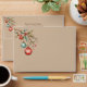 Aquarelle ornementale sur les branches saintes à l'avant, à l'arrière et à l'intérieur. "Joyeux Noël" script élégant sur le dos, que vous pouvez soit garder, modifier ou supprimer. Customisez en changeant le nom et l'adresse de retour sur le rabat arrière.