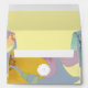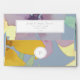 Aquarelle simple, élégante et moderne bleu poussiéreux 5x7 enveloppe avec verdure, fleurs géantes violet et jaune, adresse de retour et monogramme gris. Un choix parfait pour les mariages contemporains.