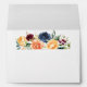 Moderne Elegant Aquarelle Floral et Verdure Envelope Faire-part de mariage comprend jaune doré, pêche, bleu, bordeaux fleurs roses et verdure botanique.