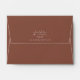 Cette enveloppe moderne présente un design intérieur abstrait et aquarelle qui ressemble à des reflets sur l'eau avec une palette de couleurs dégradées allant de la pêche pâle à la terre cuite foncée. L'extérieur est en terre cuite plus foncée en option. Personnalisez avec le nom et l'adresse de la mariée et du marié sur le rabat arrière à l'aide du modèle fourni. Recherchez ID774 pour voir l'ensemble complet de correspondances et les options de couleurs supplémentaires.