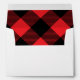 Enveloppe charmant et minimaliste pour l'envoi de vos cartes de fin de année, il y a un graphique élégant de trois arbres, quatre lignes utiles pour les adresses d'écriture manuscrite et une adresse de retour pré-imprimée pratique sur le rabat arrière. L'intérieur est orné d'un motif imprimé et confortable en noir et rouge.
