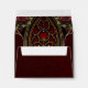 Arche gothique aux crânes. Contre un mystérieux arrière - plan rouge, une grande arcade gothique s'élève majestueusement, décorée de détails ornés. Les deux grands piliers, ornés de sculptures délicates, donnent à l'image une élégance poignante. Au milieu de l'arcade brille un impressionnant vitrail dont le motif central est une araignée symbole de patience et de créativité. Flanquée de deux crânes dorés, rappelant à la fois l'éphémère et l'amour éternel, l'arcade captive le spectateur et promet une célébration pleine de mystère et de fascination.