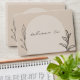 Couleurs bronzées avec arche et design botanique sur l'avant. Adresse les modèles sur le rabat arrière. Script "livrer à" des fonctionnalités frontales