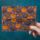 Motif mignon superbe de Halloween. Dans cette illustration vous pouvez voir des citrouilles, des araignées, des hiboux, des étoiles et la sucrerie. La conception de motif est sur l'arrière - plan pourpre de point de polka.