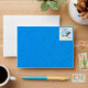 Enveloppe avec timbre postal. L'enveloppe a une texture bleue. Le timbre est collé en haut. Image : Une fille qui descend la montagne en motoneige. Paysage d'hiver, montagnes. Dénomination - 50 cents. Poste américaine. C'est une collection d'auteurs. J'accepte les commandes de timbres-poste. Écrivez dans un e-mail.