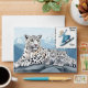 Enveloppe avec l'image de léopards des neiges. Au-dessus, un timbre d'une valeur faciale de 50 cents, une fille monte un snowboard sur une montagne. Pour envoyer des lettres. De la collection de l'auteur. Il y a aussi un autre design. Écrivez-moi un email et une commande.