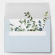Ajoutez une touche de finition à vos invitations pour bébé douche avec l'enveloppe élégante, avec un extérieur bleu doux et l'aquarelle eucalyptus à l'intérieur.