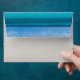 Enveloppe de scène de plage avec sable de plage lisse et de petites vagues au bord. Starfish et conception holly avec une étoile de mer unique sur l'avant et motif à l'intérieur sous le rabat. Utilisé pour envoyer des salutations de vacances par un climat chaud.