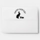 The top flap has Destei's bunny silhouette together with two Easter eggs in black color with a personalizable “Happy Easter!” text. On the front there is also a personalizable text area for a return address and mailing header. The inside of the envelope features Destei's black pattern of cute bunny shapes in different poses.