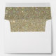Une enveloppe blanche de 5x7" avec une Parties scintillant d'or à l'intérieur.