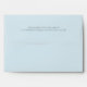Enveloppe bleu clair avec adresse de retour personnalisée sur le rabat arrière et conception d'impression de burlap à l'intérieur pour compléter nos invitations de mariage. En dehors de l'enveloppe peut être changée en n'importe quelle couleur pour compléter votre mariage.