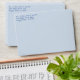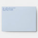 Floral à l'intérieur, enveloppe A7 de taille pour une invitation ou carte de 5 x 7 pouces contient des fleurs d'hydrangée bleu clair à l'intérieur du rabat. Un modèle texte sur le devant permet d'imprimer une adresse de retour. L'image florale bleu clair correspond à l'ensemble mariage "Blue Moon". Montré sur papier de lin.