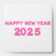 Bonne carte du Nouvel An 2025, avec arrière - plan transparent. La police élégante est dans une belle couleur rose avec balon comme design 3d.