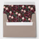 Joyeux Noël moderne élégant floral joli enveloppe de vacances. Fleur botanique aux couleurs pastel bouchées rose et rouge lors d'un séjour arrière - plan bordeaux foncé à l'intérieur. On y trouve du pin botanique, des fleurs, des sprigs, des feuilles, des baies et des bourgeons. OEuvre originale de Caroline Bonne Müller