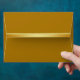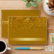 Une enveloppe de couleur noire avec badge à rayures dorées et confettis d'or sur le dessus et la surface de parties scintillant en métal doré à l'intérieur de la couverture donne une enveloppe parfaite en noir et or.