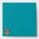 Envoyer un salut Thanksgiving dans une enveloppe orangée et décorée Turquoise. L'extérieur de l'enveloppe est turquoise solide avec une dinde colorée à l'avant. L'intérieur de l'enveloppe est décoré d'un motif artistique orange et turquoise. Envoyez un salutation ou une invitation au dîner Thanksgiving. Le rabat arrière comporte un modèle d'adresse de retour qui vous permet de préimprimer votre adresse sur l'enveloppe.