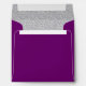Cette enveloppe carré s'adapte aux invitations carrés de 5,25" et est en violet royal avec parties scintillant en argent SIMULÉ à l'intérieur et deux étiquettes gris pour l'adresse de retour.