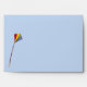 Cerf-volant en diamant en quatre couleurs, avec queue longue. Le cerf-volant apparaît dans le coin inférieur gauche de l'avant et au milieu du rabat du dos supérieur. Cerf-volant rouge, jaune, vert et bleu sur enveloppe bleue. *** Partie du set coordonné - BKM3p.