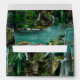 Une magique fête de vacances dans un lac d'imaginaire avec cascades, plages, bateaux à rames et végétation tropicale luxuriante répéter le design narratif pour toutes les occasions pour un thème stationnaire à customiser