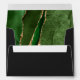 L'intérieur de cette élégante enveloppe de faire-part de mariage moderne présente une aquarelle vert chasseur conception géode d'aquarelle ornée de parties scintillant en faux or. Customisez le rabat arrière avec les noms de la mariée et du marié en écriture manuscrite de couleur or et l'adresse de retour en police cuivre sur un arrière - plan non noir.