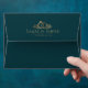 Cette enveloppe d'invitation turquoise de mariage élégante et élégante présente de magnifiques aquarelles peintes à la main OR, le monogramme de mariée et mariée, et l'adresse de retour.