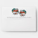 Ces enveloppes personnalisées sont parfaites pour envoyer des invitations de mariage et présentent des graphiques de style tatouage avec des coeurs de style rétro en rouge avec des accents de fleurs bleues qui sont prêts à être personnalisés avec le nom de la mariée et du marié. Le graphisme tatoué à la main libre a une sensation rétro.