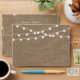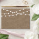Simple mais élégant, les lampes à cordes de la collection rustique mariage burlap est un design étonnant avec de belles lumières à cordes blanches suspendues sur un arrière - plan effet burlap, qui est parfait pour toute célébration mariage rustique. Ces enveloppes peuvent être personnalisées pour votre occasion spéciale et feraient l'enveloppe parfaite pour vos invitations de mariage, annonces de douche nuptiale, invitations de fiançailles, cartes de fête d'anniversaire et beaucoup d'autres annonces d'occasions spéciales. Ajoutez votre libellé personnalisé à cette conception à l'aide des cases "Modifier ce modèle de conception" situées à droite de l'élément, ou cliquez sur le bouton bleu "Customiser" pour arranger le texte, modifier les polices et les couleurs et ajouter des informations ou des images supplémentaires à cette conception. AFFICHER LES ÉLÉMENTS CORRESPONDANTS POUR CETTE COLLECTION