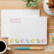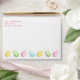 Destei's watercolor Easter egg pattern in light pink, blue, yellow and green. The pattern is placed on the inside, while the outside features a row of colorful eggs and a personalizable text area. The default text color is pink, but it can be changed to any color. This adds a cute detail to any Easter or springtime mailings.
