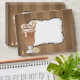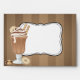 Une enveloppe mignonne avec un design d'un vieux chocolat lakshake ou malt si vous préférez sur elle. Placé contre un arrière - plan de rayures chocolat avec un ruban blanc. Quelques biscuits complètent la scène.