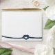 Connecteur de corde et enveloppe d'invitation à l'ancrage avec bandes bleu marine et blanc à l'intérieur pour compléter l'ensemble de faire-part de mariage correspondant. Personnalisez l'adresse de retour sur le rabat avant et sur le rabat arrière.