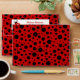 Cette enveloppe d'anniversaire mignonne présente une coccinelle mignonne et une typographie branchée sur un arrière - plan pois noir et rouge.