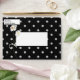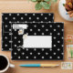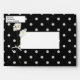 Bouquet de marguerite et marguerite blanche avec arc en satin blanc sur pois blancs et arrière - plan noir.