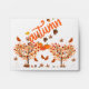 Cette enveloppe pleine de charme présente un design automnal dynamique, parfait pour les salutations saisonnières, les invitations ou les notes spéciales. Il présente de beaux arbres d'automne avec des feuilles colorés, des citrouilles, des glands et des feuillages épars, incarnant l'esprit de la saison d'automne. L'avant affiche "automne" dans un script capricieux, tandis que l'arrière comporte un motif répétitif d'arbres à automne et de feuilles.