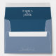 Élever votre réception de mariage avec cet élégant bleu sur l'enveloppe bleue avec les initiales de couple sur un esperon muet sur le sceau
