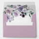 L'extérieur du Design est revêtu d'une teinte violette poussiéreuse — il présente d'élégants éléments de couleur aquarelle fleurie dans différentes nuances de violets poussiéreux, de prune foncée et plus encore. Le design présente également différents types de verdure rustique et des branches avec des éclaboussures d'aquarelle gris argenté dans les coins pour ajouter du style.