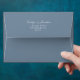 Les fleurs bleues, l'adresse de retour, les noms et la couleur de cette enveloppe peuvent être personnalisés.