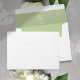 Jolie enveloppe de mariage blanche croquante avec des éléments verts et roses pour assortir avec d'autres articles de papeterie de la collection. Ce modèle présente un ensemble contemporain de polices de caractères de couleur vert clair. L'intérieur de l'enveloppe correspond au texte vert clair. Les initiales du couple en blanc sont encadrées par une délicate bordure florale à l'intérieur. Cet article fait partie d'une suite de collection de mariage qui comprend une sélection élaborée de papeterie élégante et chic pour assortir.