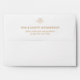Ces enveloppes de mariage glamour ont une touche moderne d'art déco classique. Un motif géométrique orné et faux or décore l'intérieur de cette élégante enveloppe blanche pour un look de mariage spectaculaire et vintage. Votre adresse de retour se trouve sur le rabat arrière.