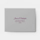 Ces enveloppes RSVP sont simples mais élégantes. Conçues comme une enveloppe de format A2 à utiliser avec des cartes de 4,25 po x 5,5 po, elles disposent d'un arrière - plan gris avec une adresse pré-imprimée sur l'avant en écriture de script élégante. Le rabat intérieur est un cassis violet, magenta, ou la couleur de la baie avec de faux plis gris argent en dentelle. merveilleuse et classe façon de rendre facile à vos invités d'envoyer leurs cartes de réponse.
