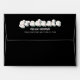 Ce design comprend une police de typographie cool moderne, rétro simple, avec des couleurs blanches, noires et arc-en-ciel, un rabat à retour imprimé, un minimaliste minimaliste minimaliste design tendance, 5x7 a7 taille d'enveloppe, une enveloppe d'invitation pour la remise des diplômes, une enveloppe de faire-part de remise des diplômes, un style design contemporain, une typographie moderne script super