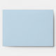 Une enveloppe mariage rétro moderne écrite à la main et colorée. Ce qui présente les noms de mariée et de marié en gras en couleur marine. Et adresse de retour personnalisée. Sur simple bleu clair clair vintage couleur arrière - plan. Ce qui convient à toute la suite mariage.