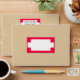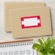 Une enveloppe avec un panneau d'adresse noir et blanc élégant avec une ombre portée qui donne l'illusion d'un bâton sur le étiquette. Une version plus petite du étiquette est répétée au verso et peut être customisée avec votre adresse de retour.