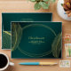 This elegant envelope design features delicate gold feather illustrations on a deep green background, creating a luxurious and minimalist aesthetic. The refined gold lines add a sense of sophistication and grace, making this envelope perfect for formal and special occasions. The balanced layout leaves a clean space in the center for a recipient's name and address, making it both functional and visually appealing.